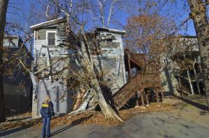 It's mild here and sunny, and Mike's been out chopping hurricane-fallen wood. On the sidewalks there are piles of it, and fallen leaves in bags that Suzie's going to help Mike's mum gather and mulch her garden with. We're both struck by the permaculture principle that "waste is just a resource you haven't found a use for yet", and there's an abundance of resource here, waiting to be transformed. It's all just a matter of tapping into potential. In recent years, we've become aware of nature's cycle of destruction and renewal so much that, when we see destruction, we immediately look for signs of renewal. Here, it's in the stories of how communities pull together to help each other in the aftermath of the devastation to houses, and weeks without gasoline or electricity, and the incredibly organised volunteer efforts to help "hurricane families". Sometimes it can take disaster and crisis to unlock abundant potential -- "when the night is darkest, the stars come out.". People who were facing a fallen tree on their house found community to help renew. We hope to go give a hand while we're here.